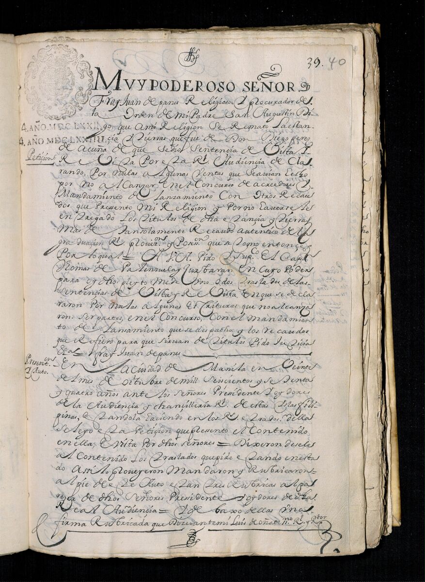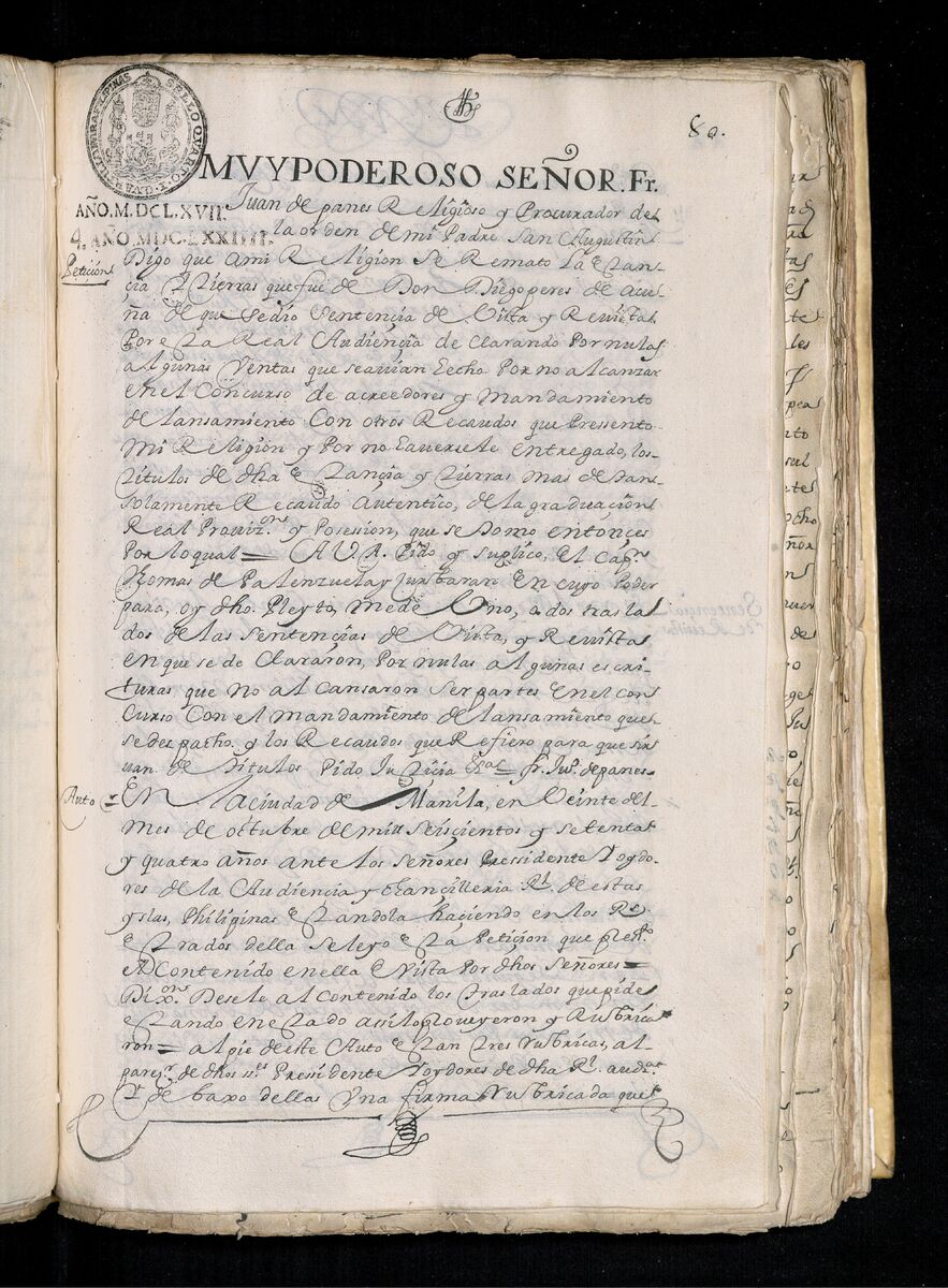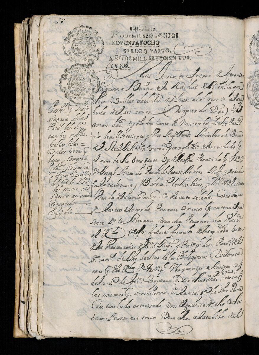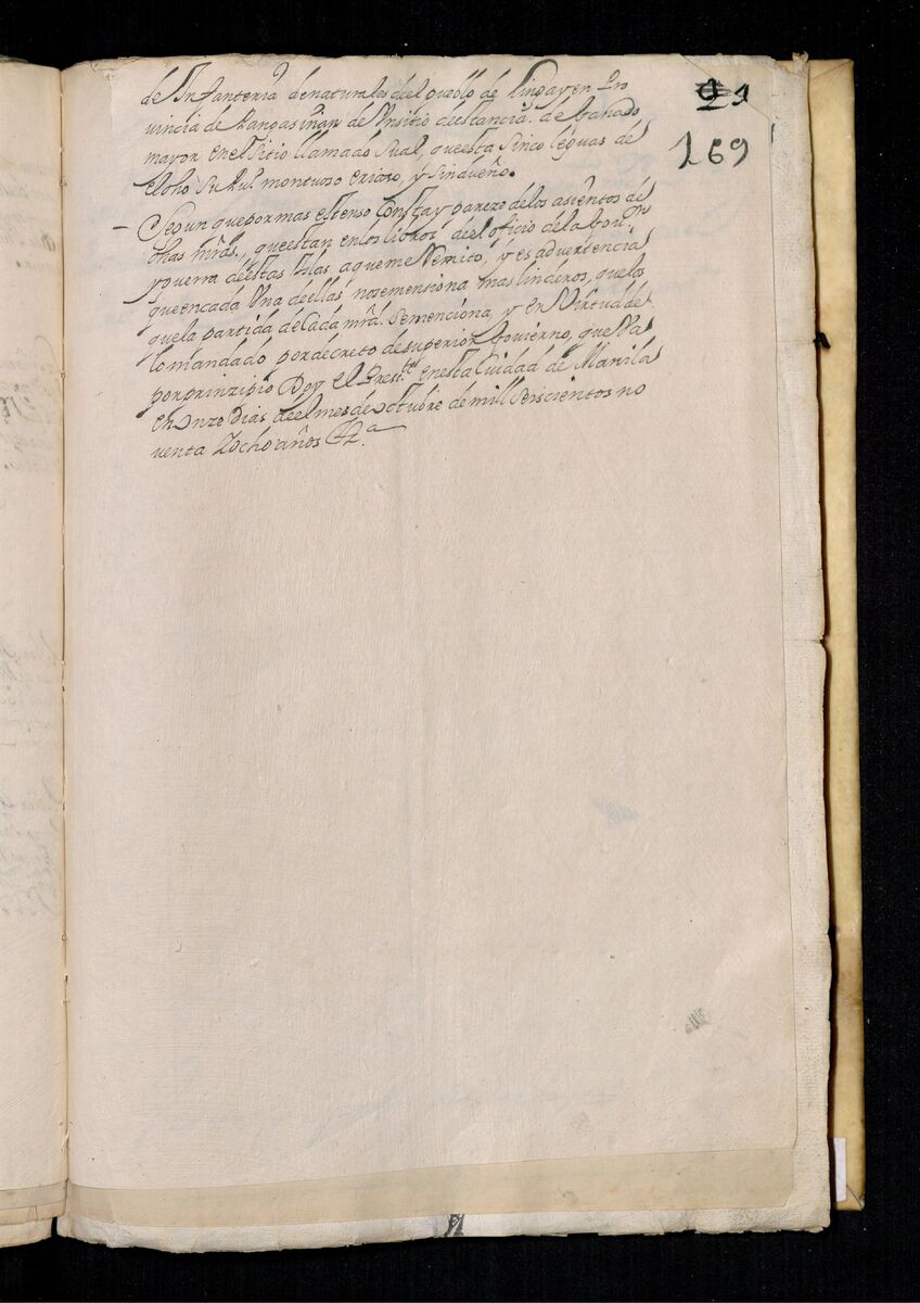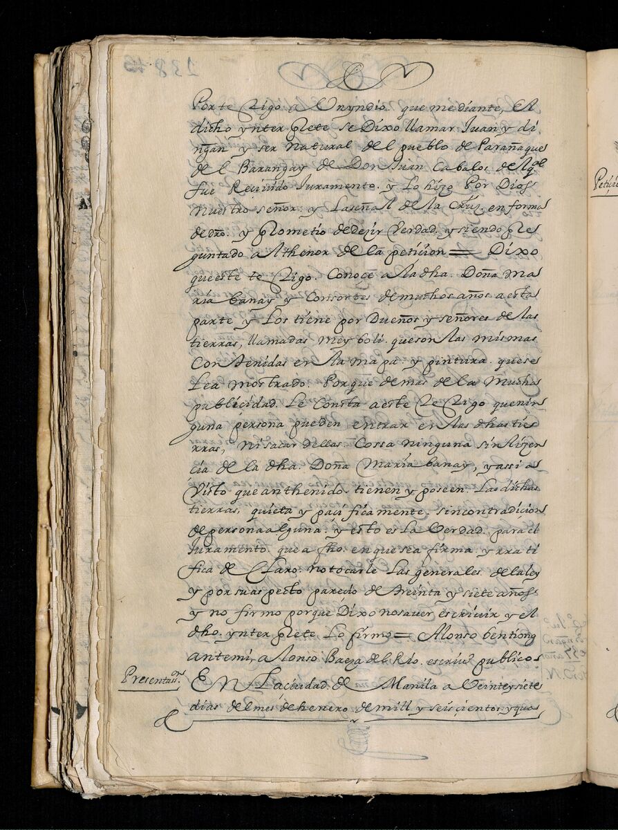 Escritura de venta otorgada por el Sargento Mayor Don Pedro Posada Pérez de una estancia que tiene en el Pueblo de Jaro (Iloilo) al Convento de San Agustín de Manila. 1723.