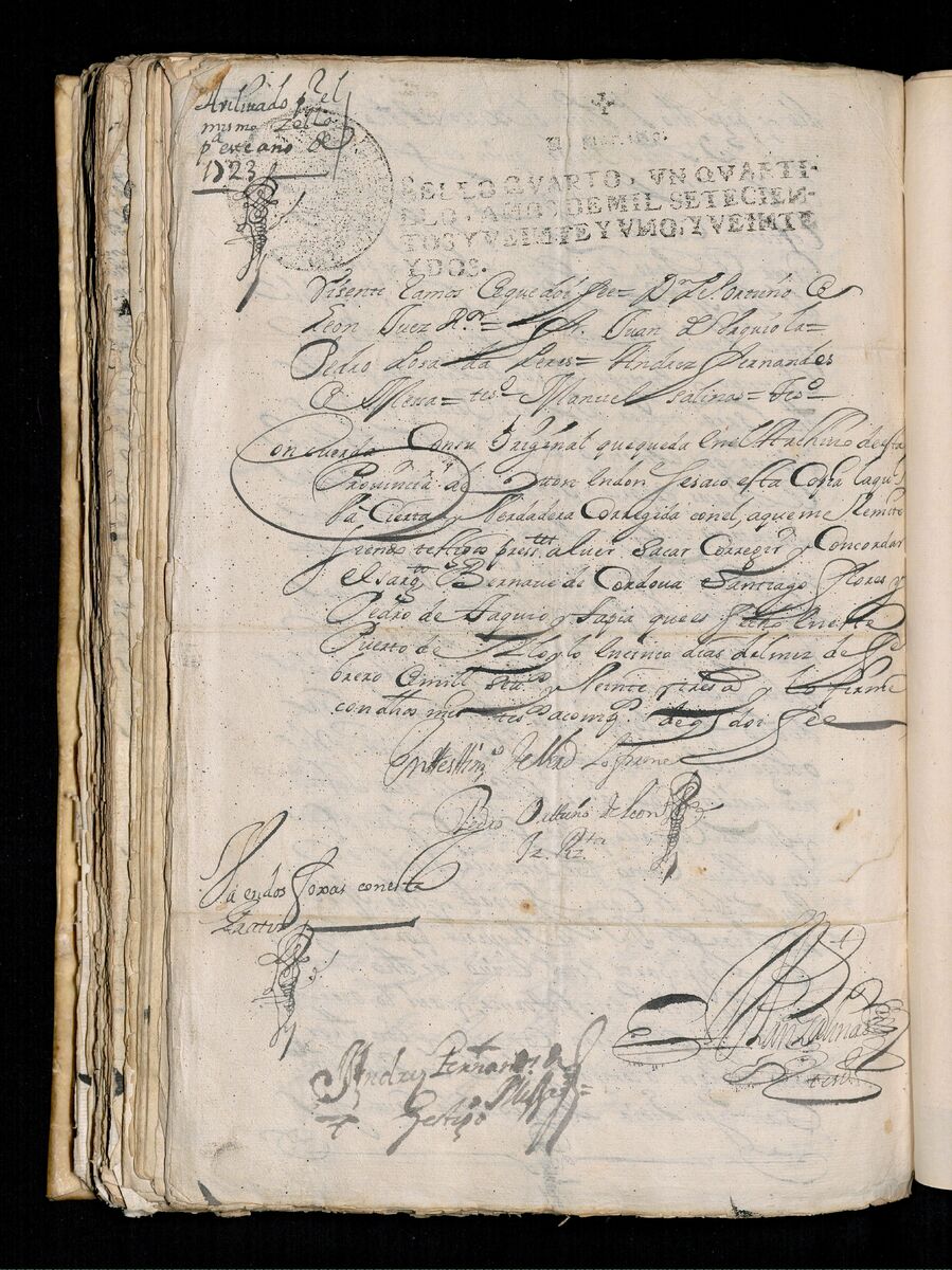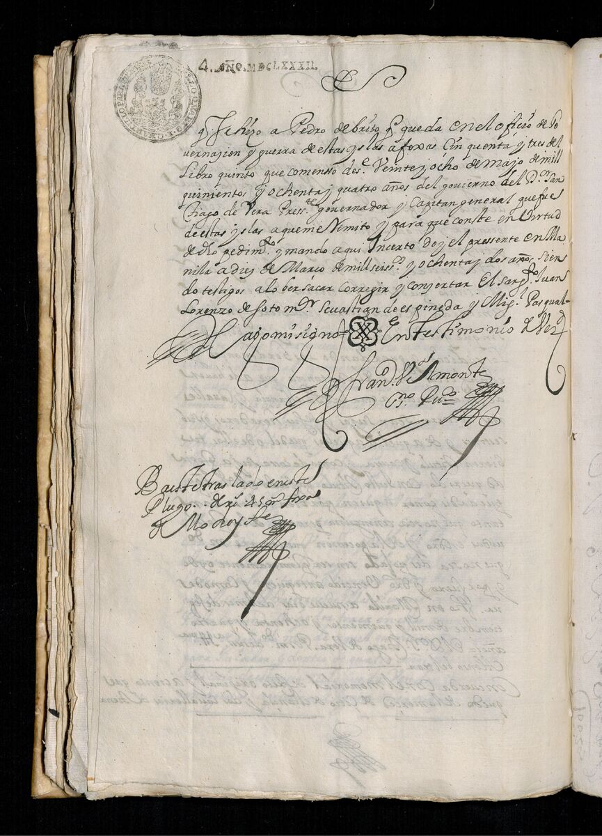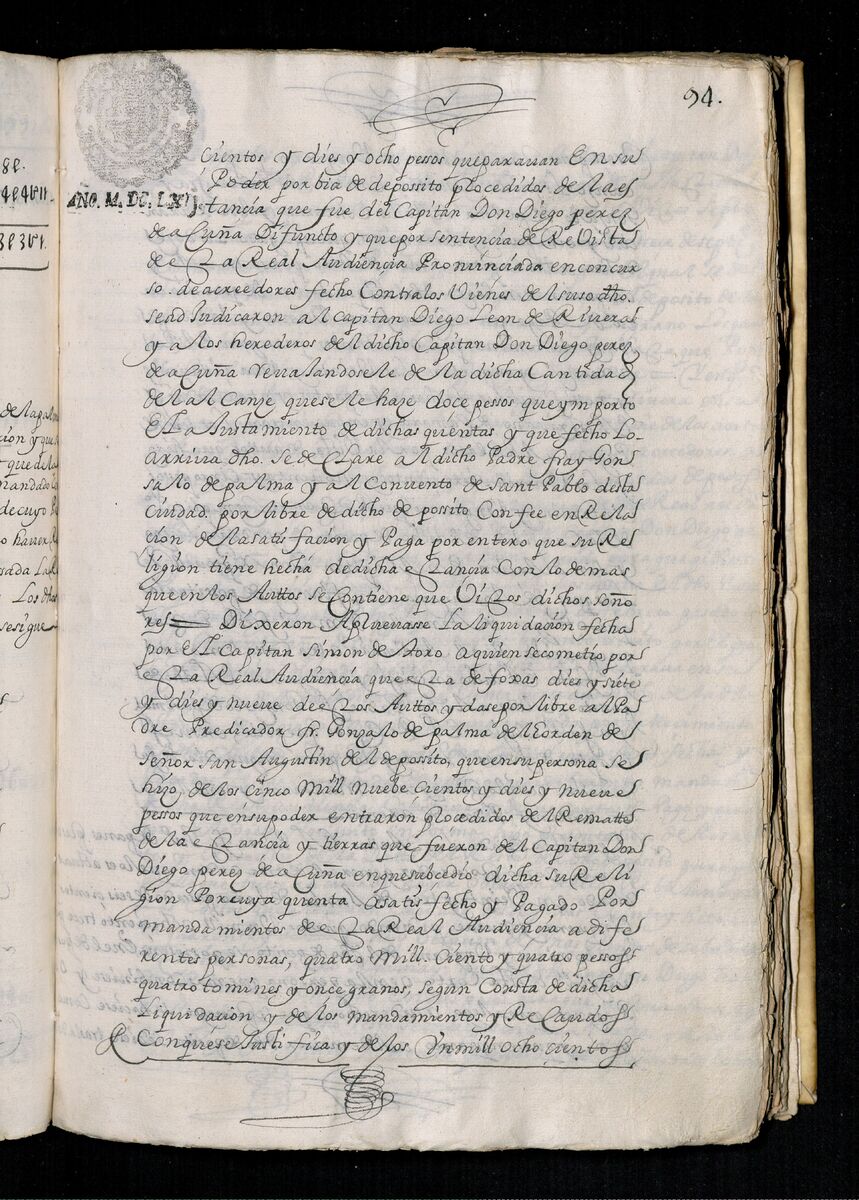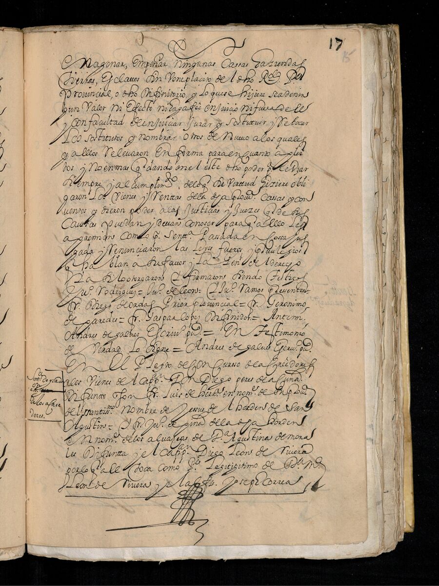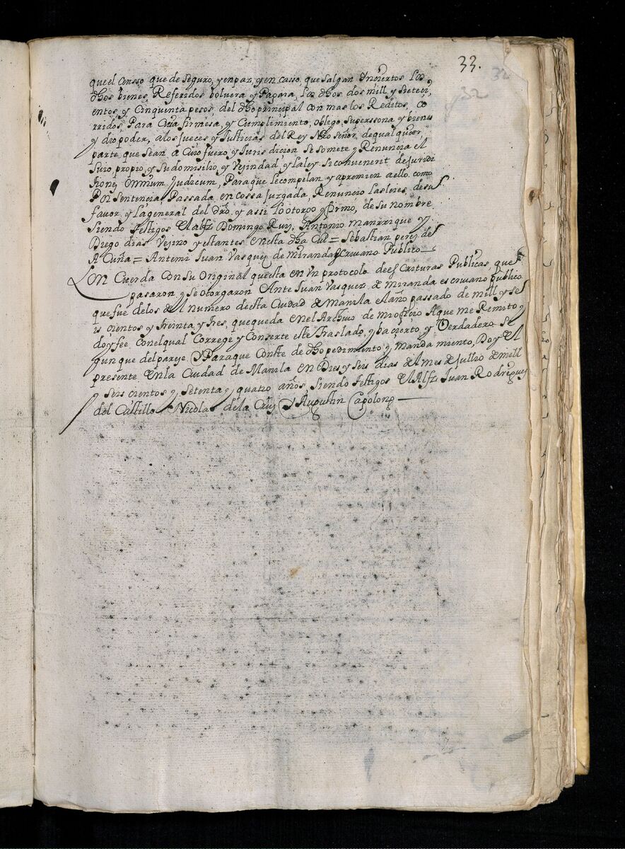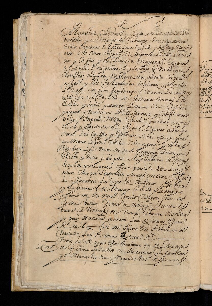 Escritura de venta otorgada por el Sargento Mayor Don Pedro Posada Pérez de una estancia que tiene en el Pueblo de Jaro (Iloilo) al Convento de San Agustín de Manila. 1723.