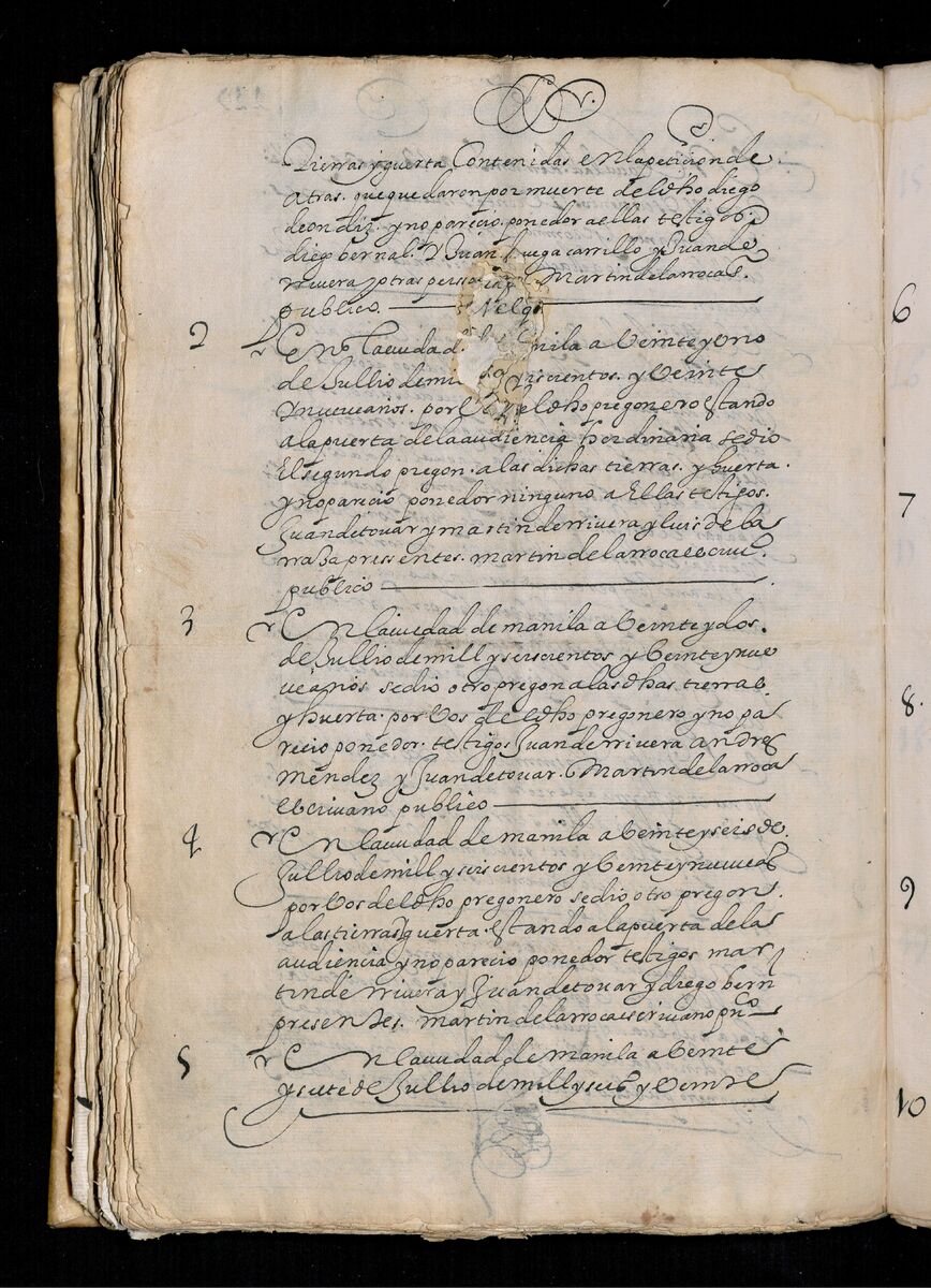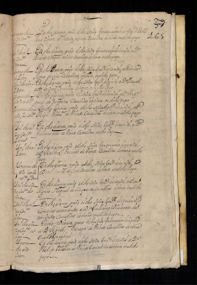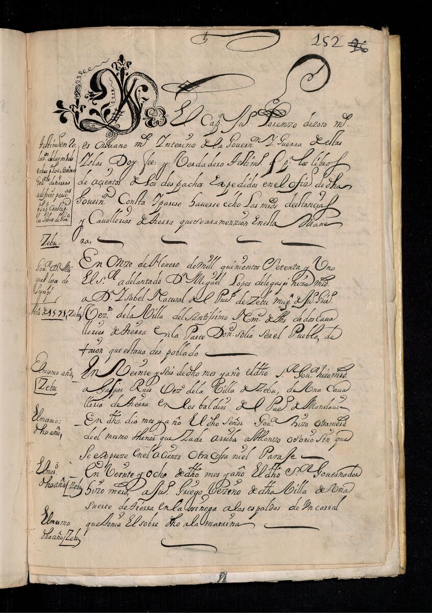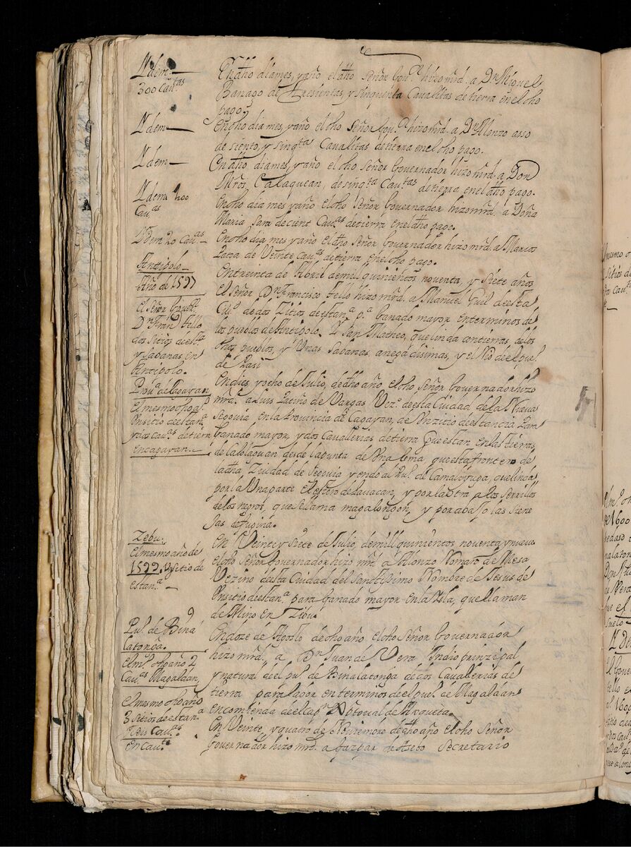 Testimonio en Cebú de las mercedes hechas por los señores gobernadores de tierras a diferentes personas que se mencionan comenzando en 1571. 1698