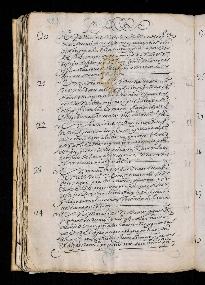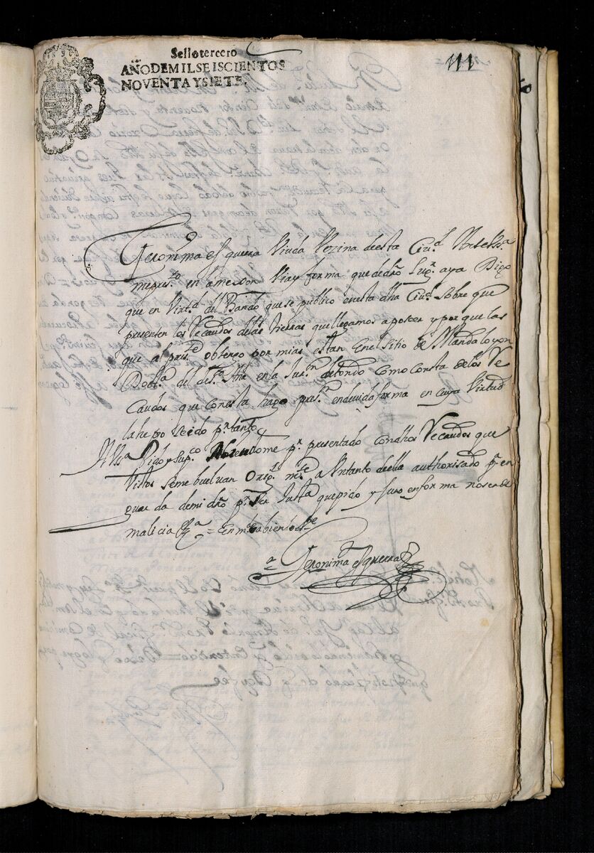 Gerónima Esguerra, viuda de esta ciudad de Manila sobre el bando que pide que presenten los recaudos de las tierras que posee, 1697.