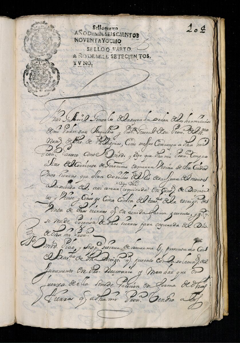 Francisco Puyol pide recaudos de las compras de unas tierras al Padre Promotor de la Orden de San Agustín. 1697.