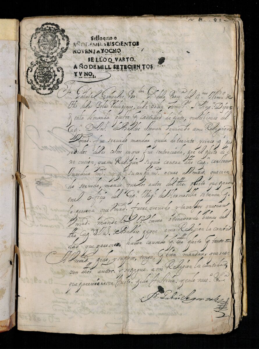 Fray Gabriel González de la Provincia del Santísimo Nombre de Jesús de las Filipinas pide la plata que el debe el Capitán Don Juan de Valdés