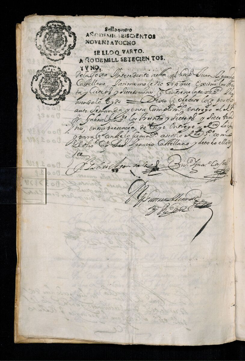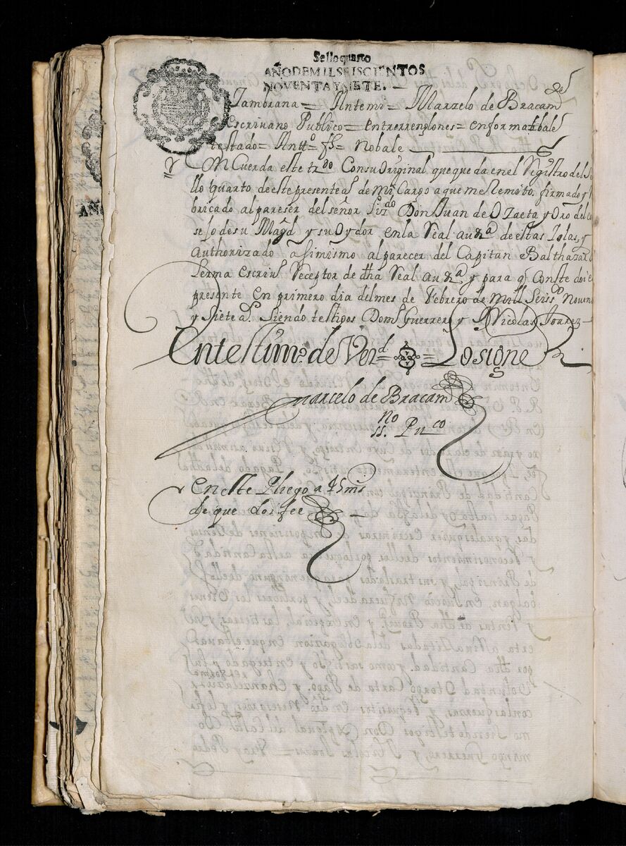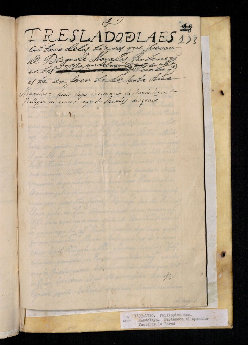 - Mandaloya. Pertenece al Aparador fuera de la Pared. Caxon No. 18. Estancias. Legajo 6. Mandaloya y estanzia de Aguna.